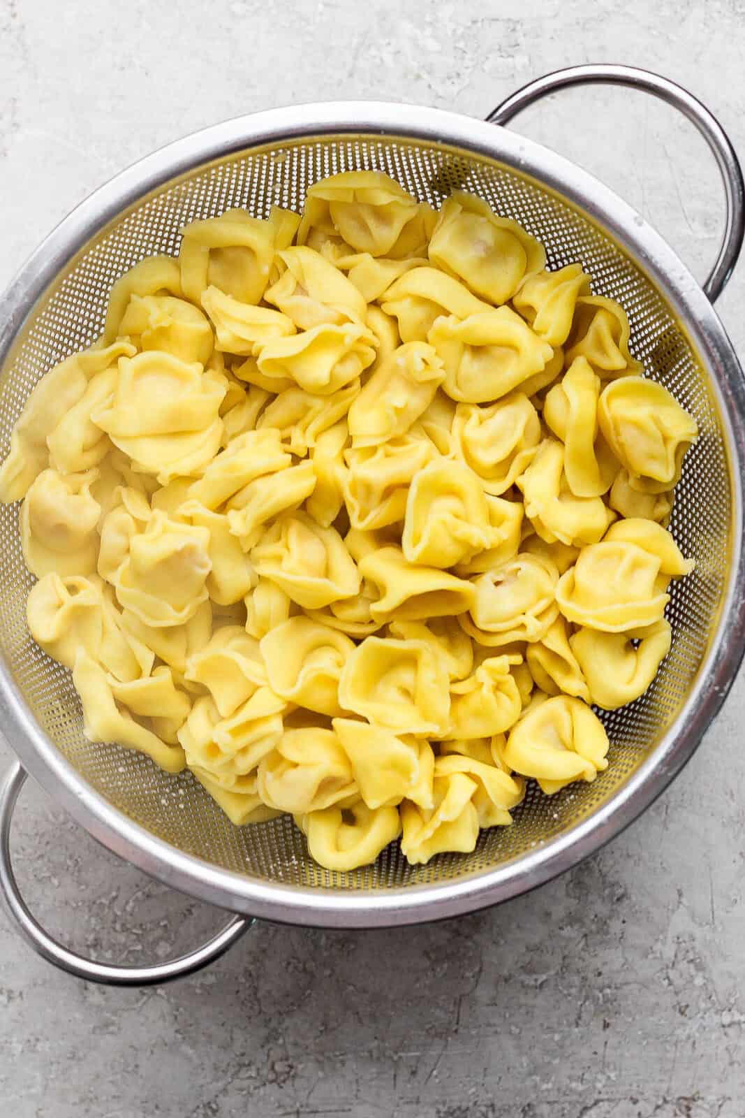 - Cook Tortellini: cook 20 ounces cheese tortellini according to package instructions. Drain and rinse with cold water.