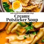 Make this Creamy Thai Coconut Potsticker Soup for a 20 minute dinner that is full of warm and cozy flavors!