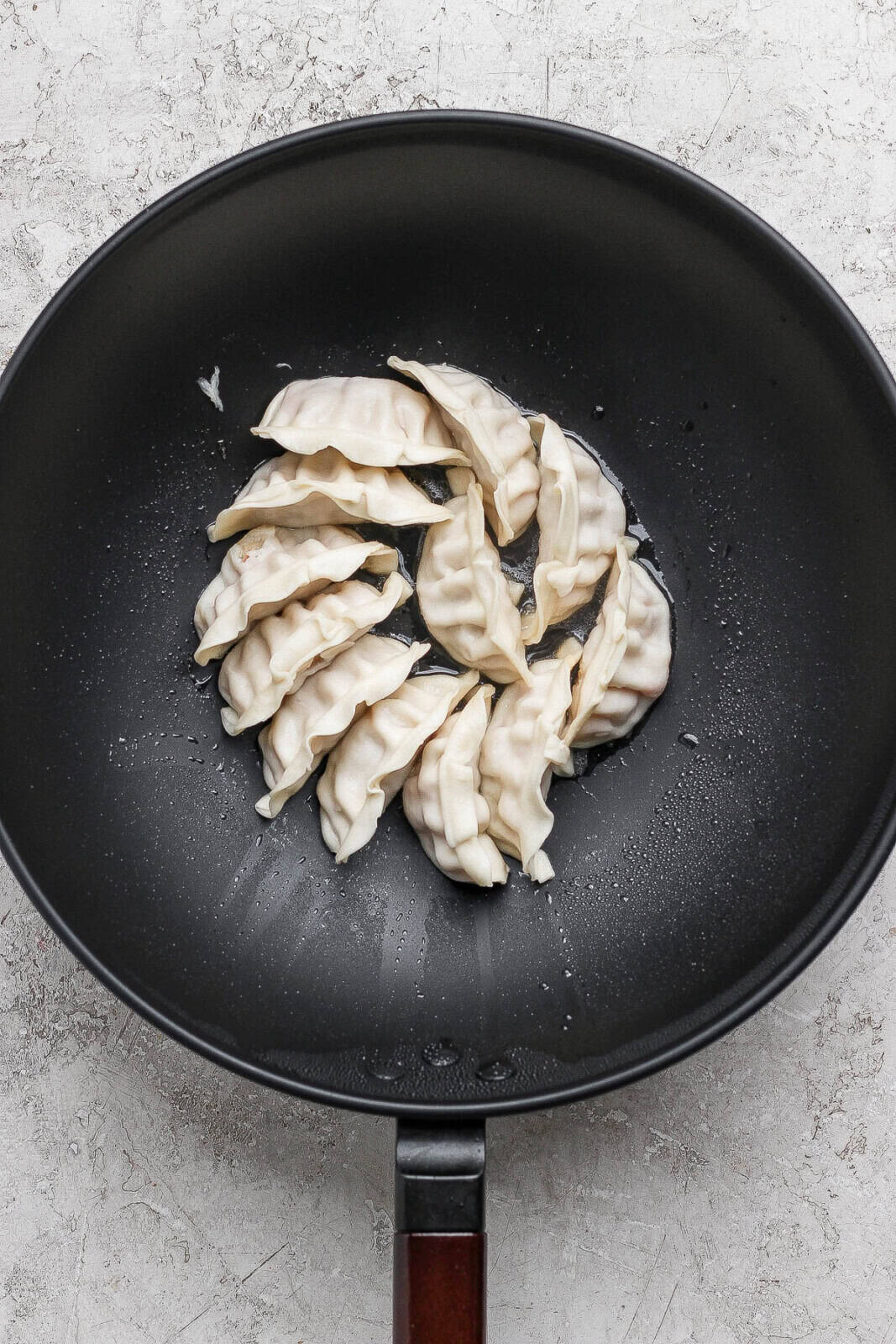 Step 1 – Cook the frozen potstickers in a large skillet or wok.