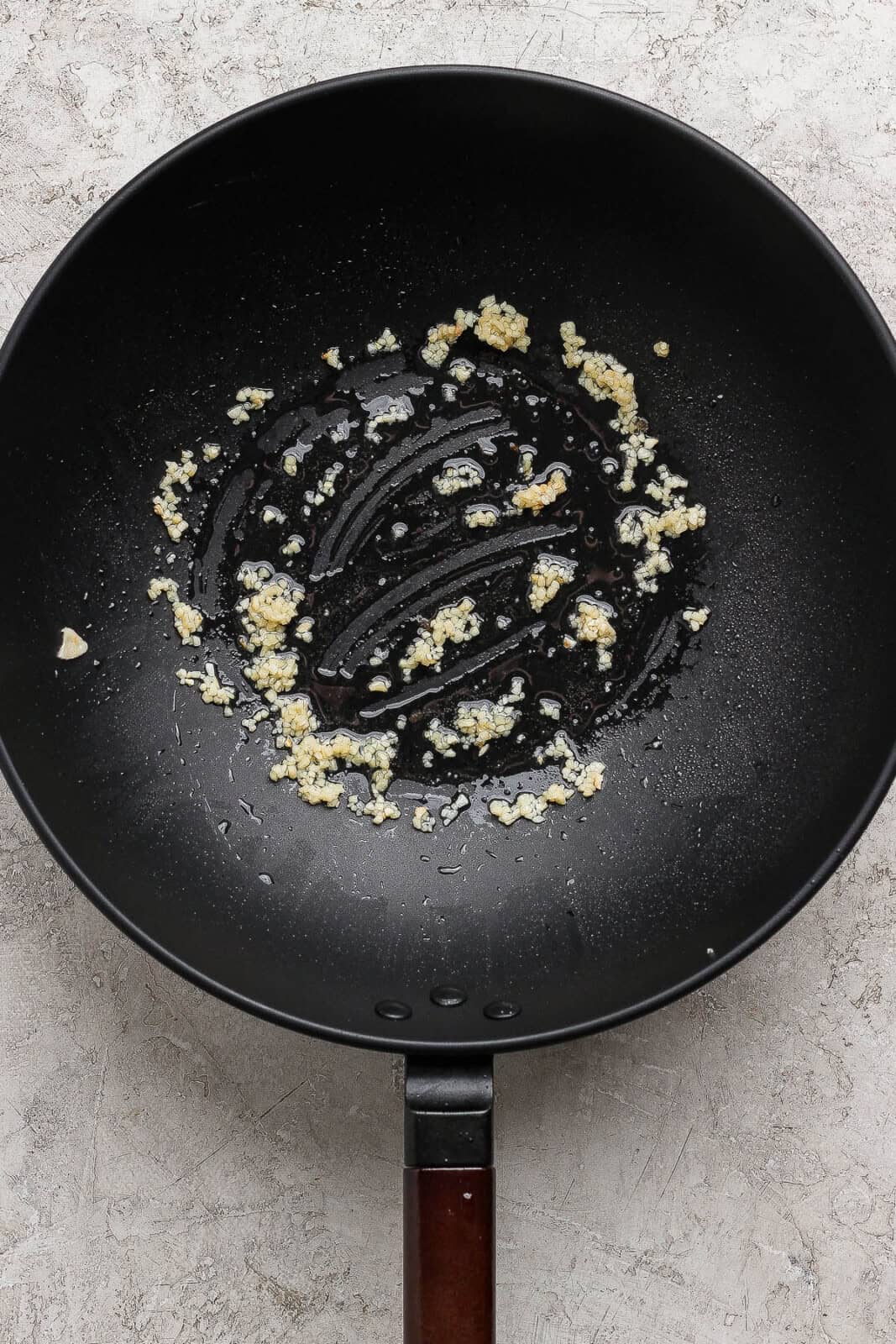 Step 2 – Now, sautรฉ the garlic in a little olive oil.